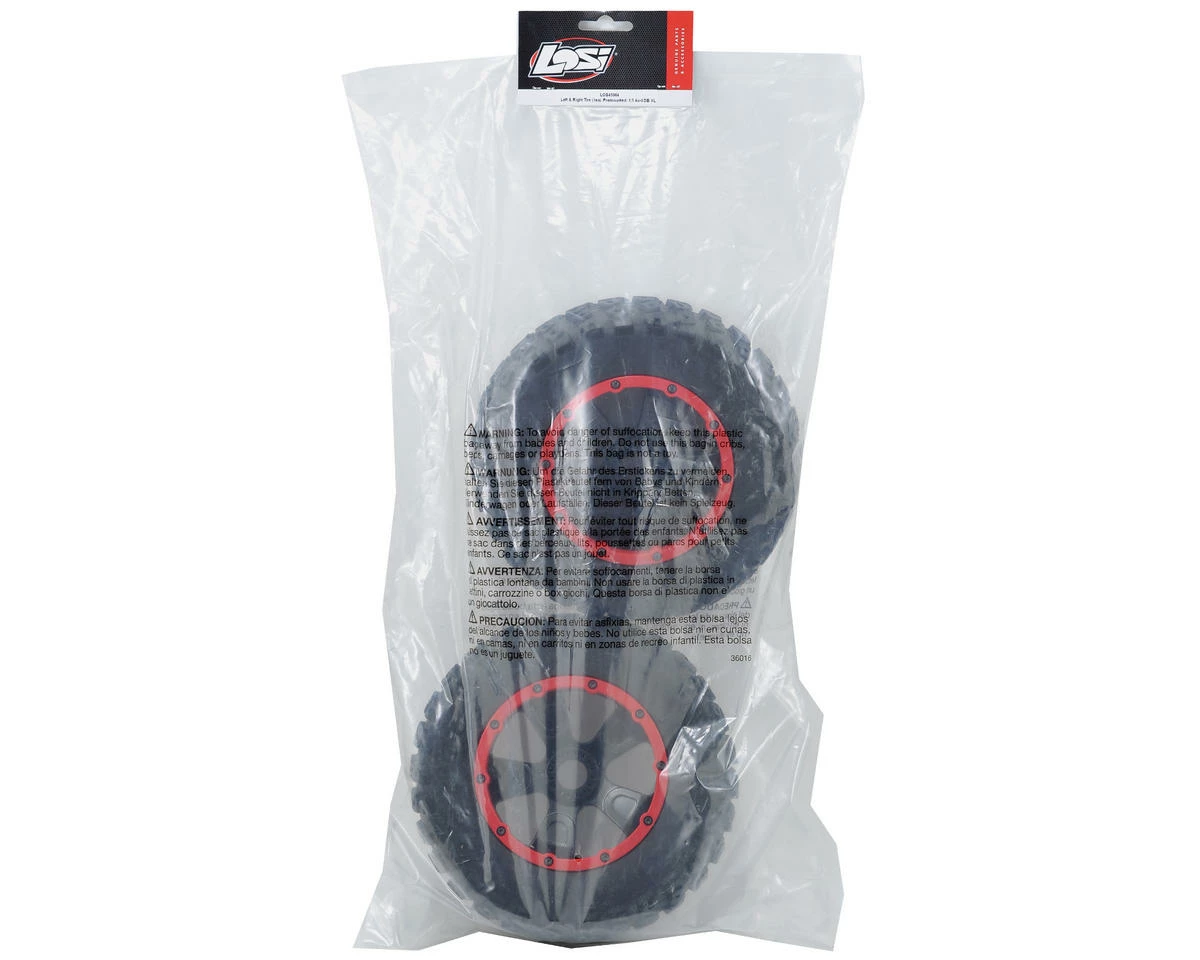 This is a pack of two replacement Losi Desert Buggy XL Left & Right Pre-Mounted Tire Set. These tires are directional, and can be used in the front or rear position.