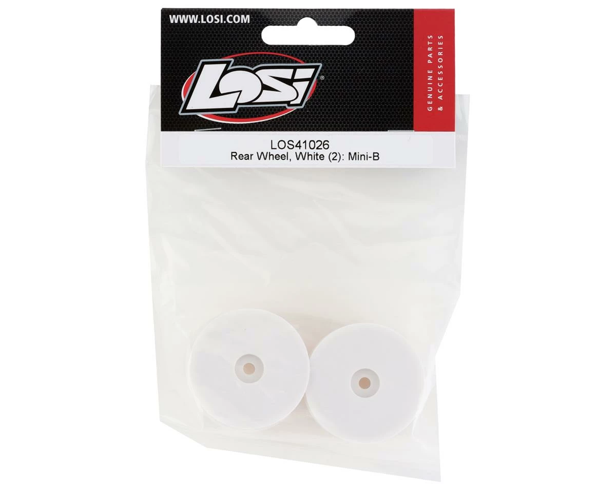 Losi Mini-B Rear Wheels. These optional wheels are intended for the rear of the Losi Mini-B. Package includes two rear wheels.