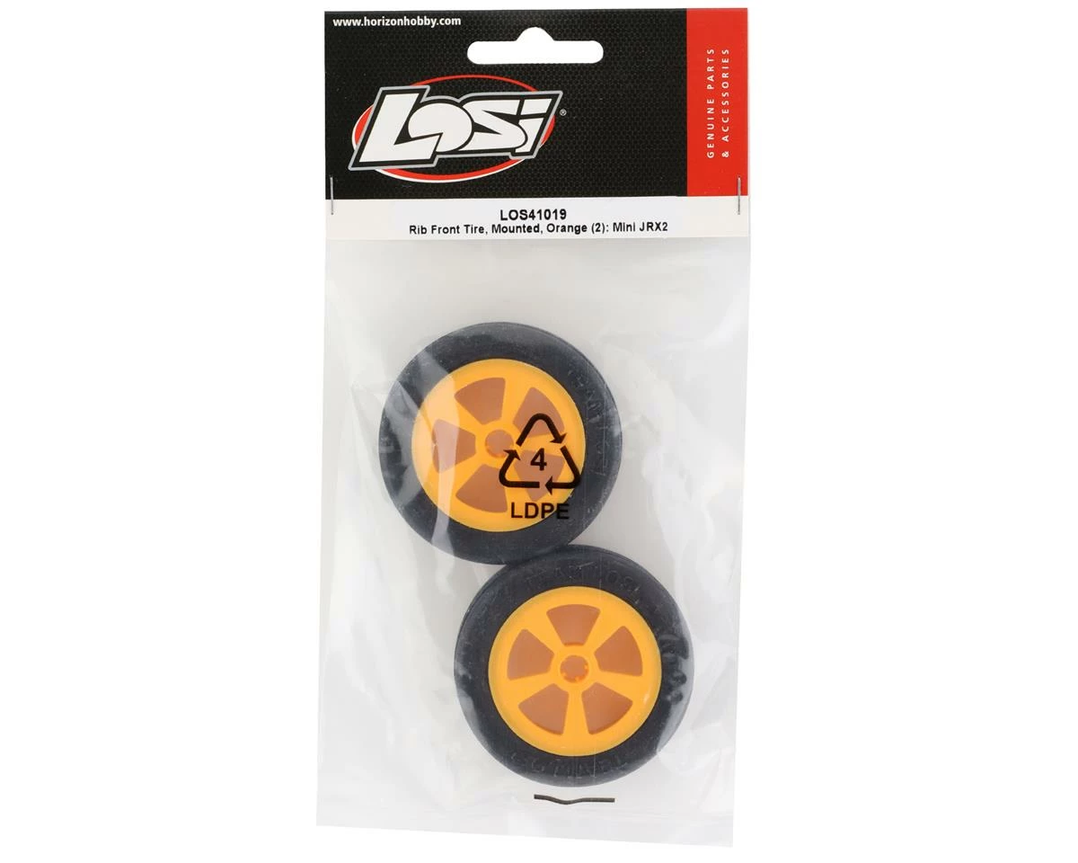 Losi Mini JRX2 Pre-Mounted Front Rib Tire. These replacement front rib tires come pre-mounted for the Losi Mini JRX2 Buggy. Package includes two pre-mounted front rib tires.Â