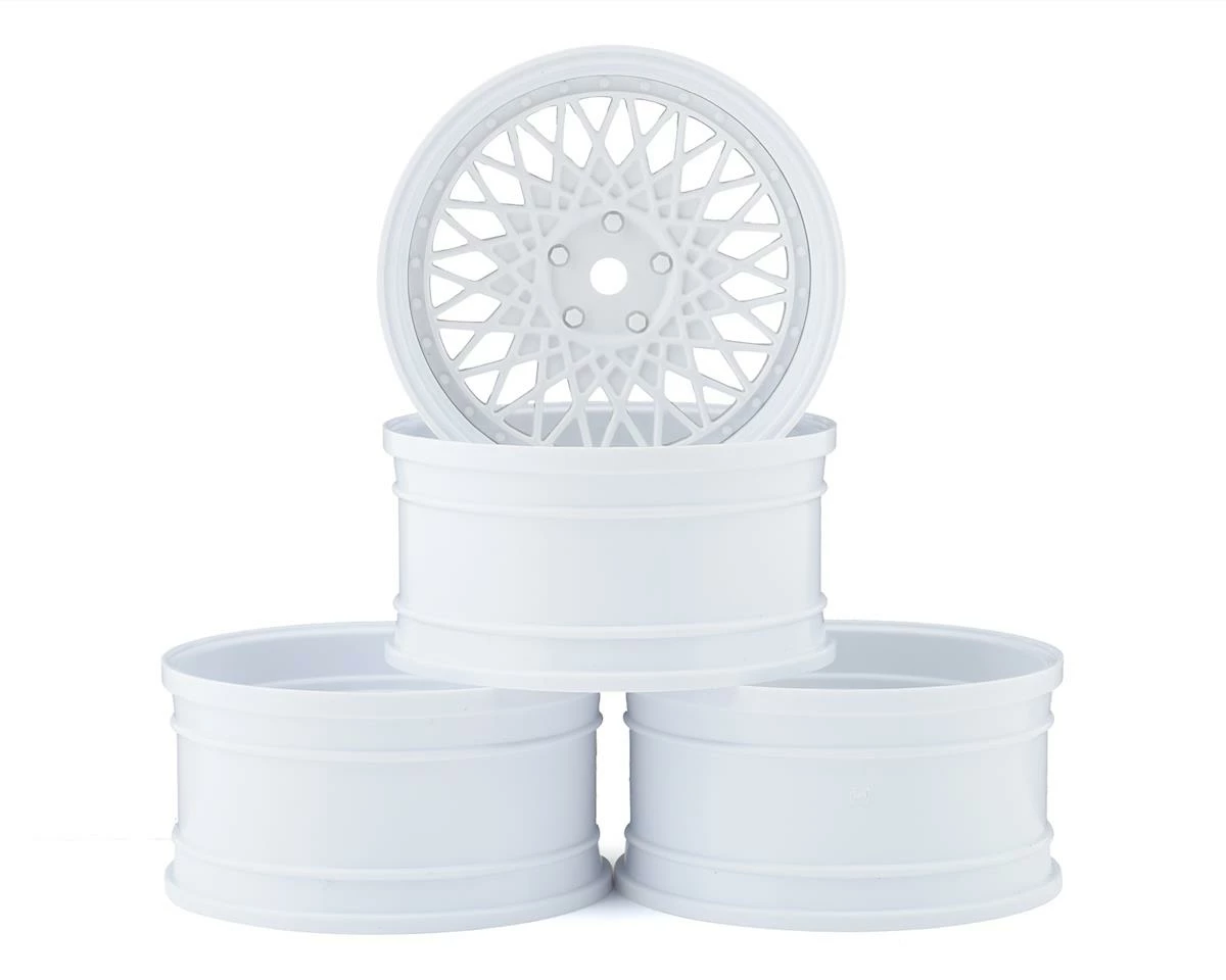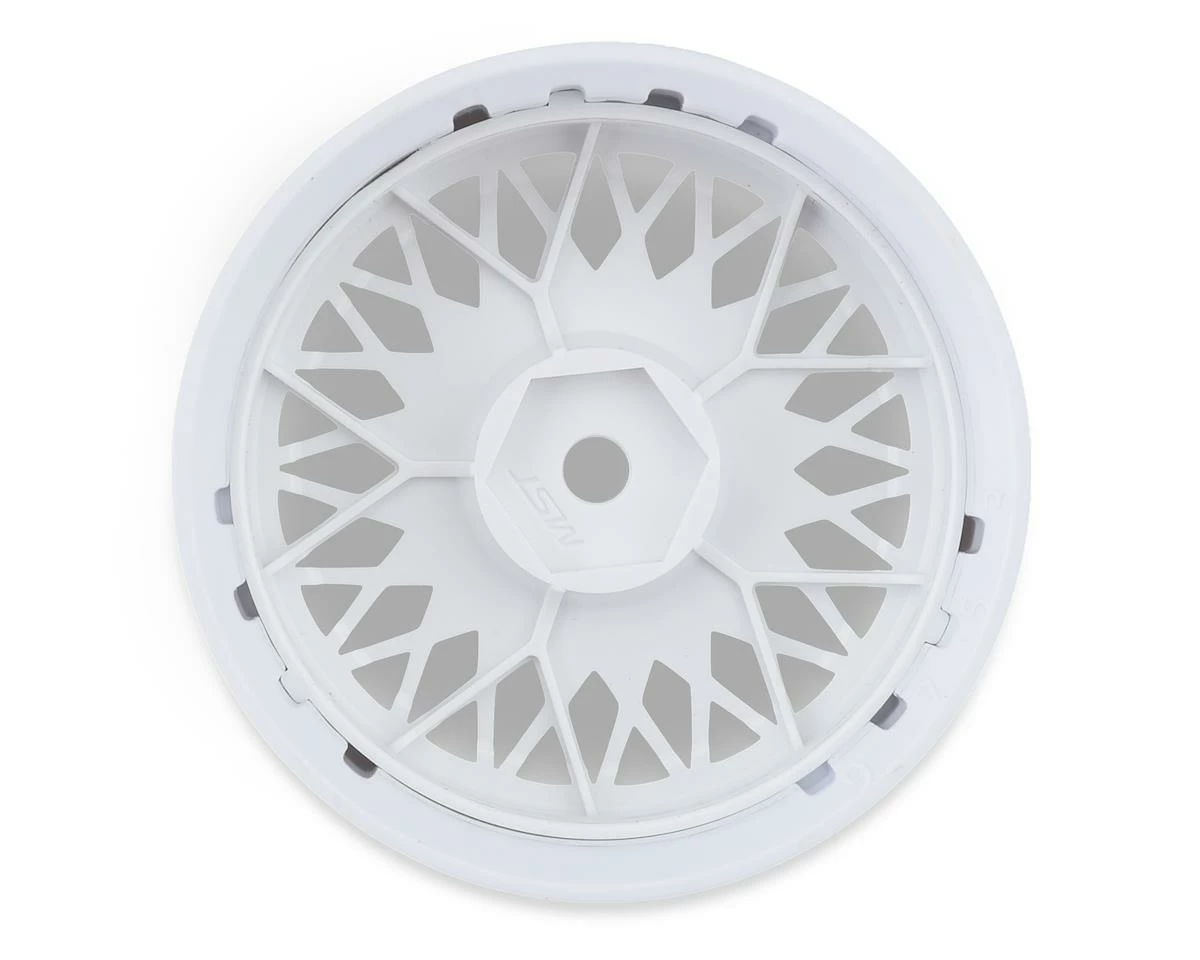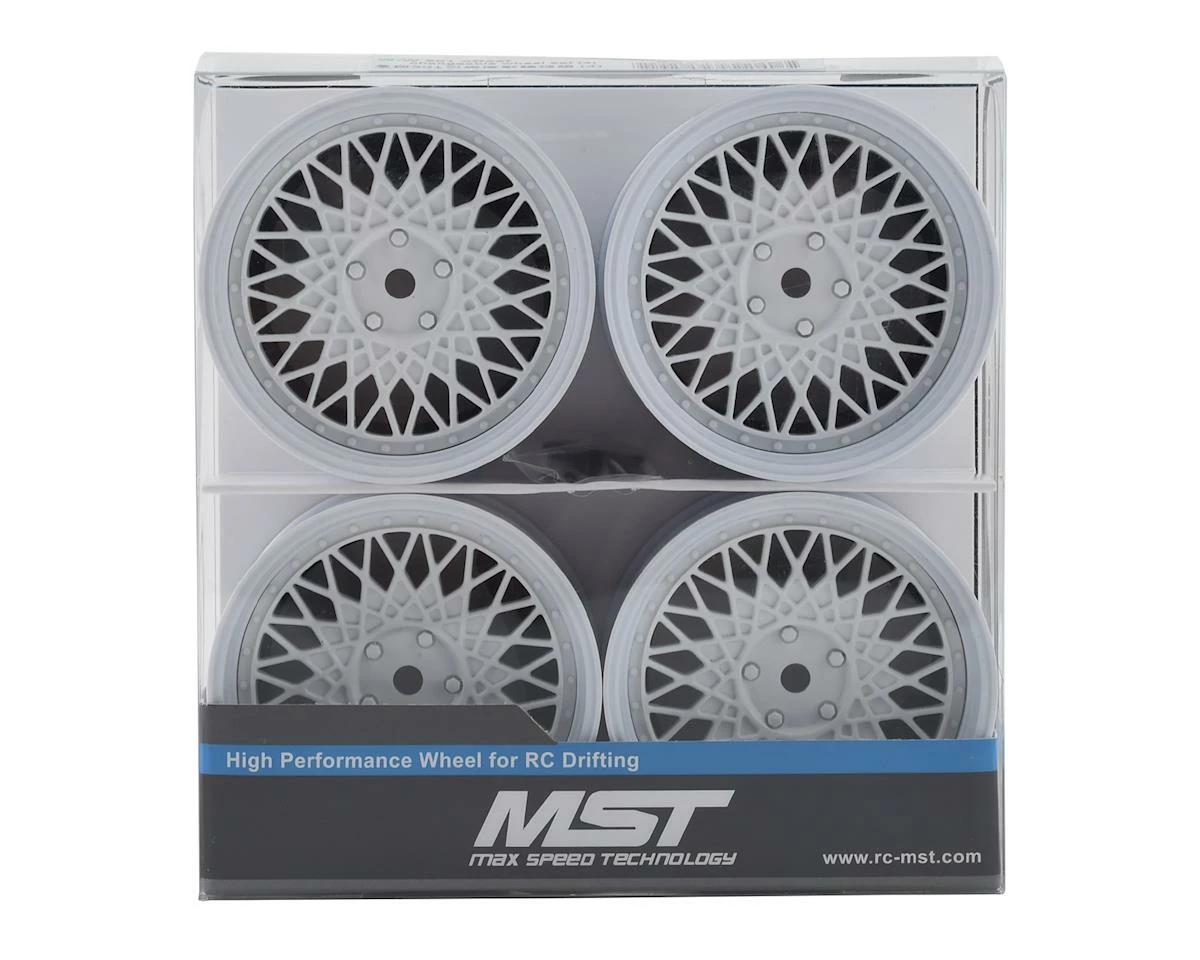 This is an MST 501 Offset Changeable Wheel Set. These wheels feature a classic webbed pattern and molded in five lug bolt details. The design allows you to setup the wheel with a +3, +5, +7 or +9 offset to fit a variety of bodies, and setup the stance to create the look you want on your ride. Simply clock the wheel face inside the rim and glue in place. Package includes four wheels, four serrated wheel nuts and four adhesive foam strips and is available in multiple colors.