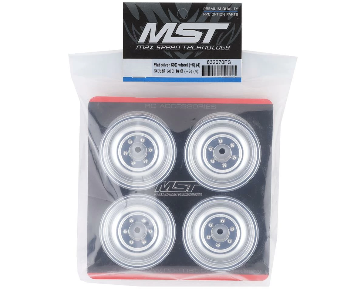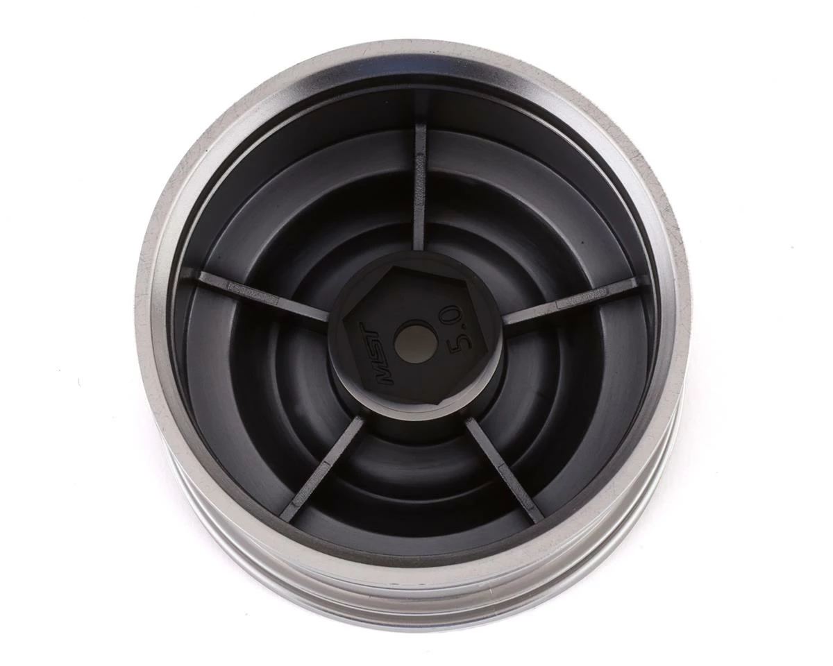 The MST 60D 1.9″ Crawler Wheel is a classic steel wheel design, with modeled in 6 lug bolt details. These glue type wheels are pre-vented, measure 26mm wide and offer a +5mm offset. Package includes four wheels and a set of four serrated wheel nuts.Â