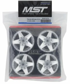 The MST 648 1.9″ Crawler Wheel is a 5 spoke style wheel design, with modeled in 8 lug bolt details. These glue type wheels are pre-vented, measure 26mm wide and offer a +5mm offset. Package includes four wheels and a set of four serrated wheel nuts