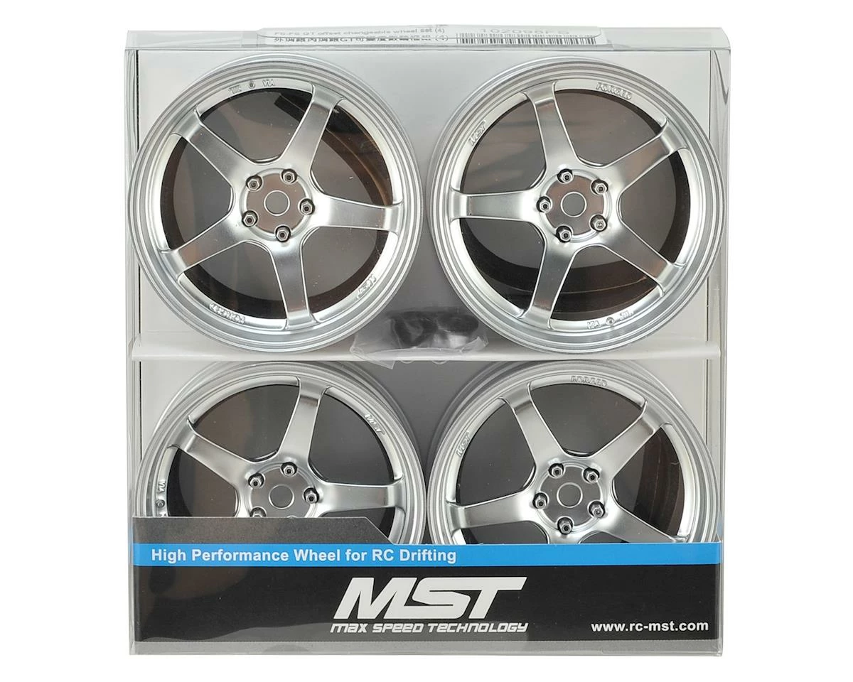 The MST GT Offset Changeable Wheel Set features an aggressive 5 spoke pattern and modeled in 5 lug bolt details. The design allows you to setup the wheel with a +3, +5, +7 or +9 offset to fit a variety of bodies, and setup the stance to create the look you want on your ride. Simply clock the wheel face inside the rim and glue in place. Package includes four wheels, four serrated wheel nuts and four adhesive foam strips.Â