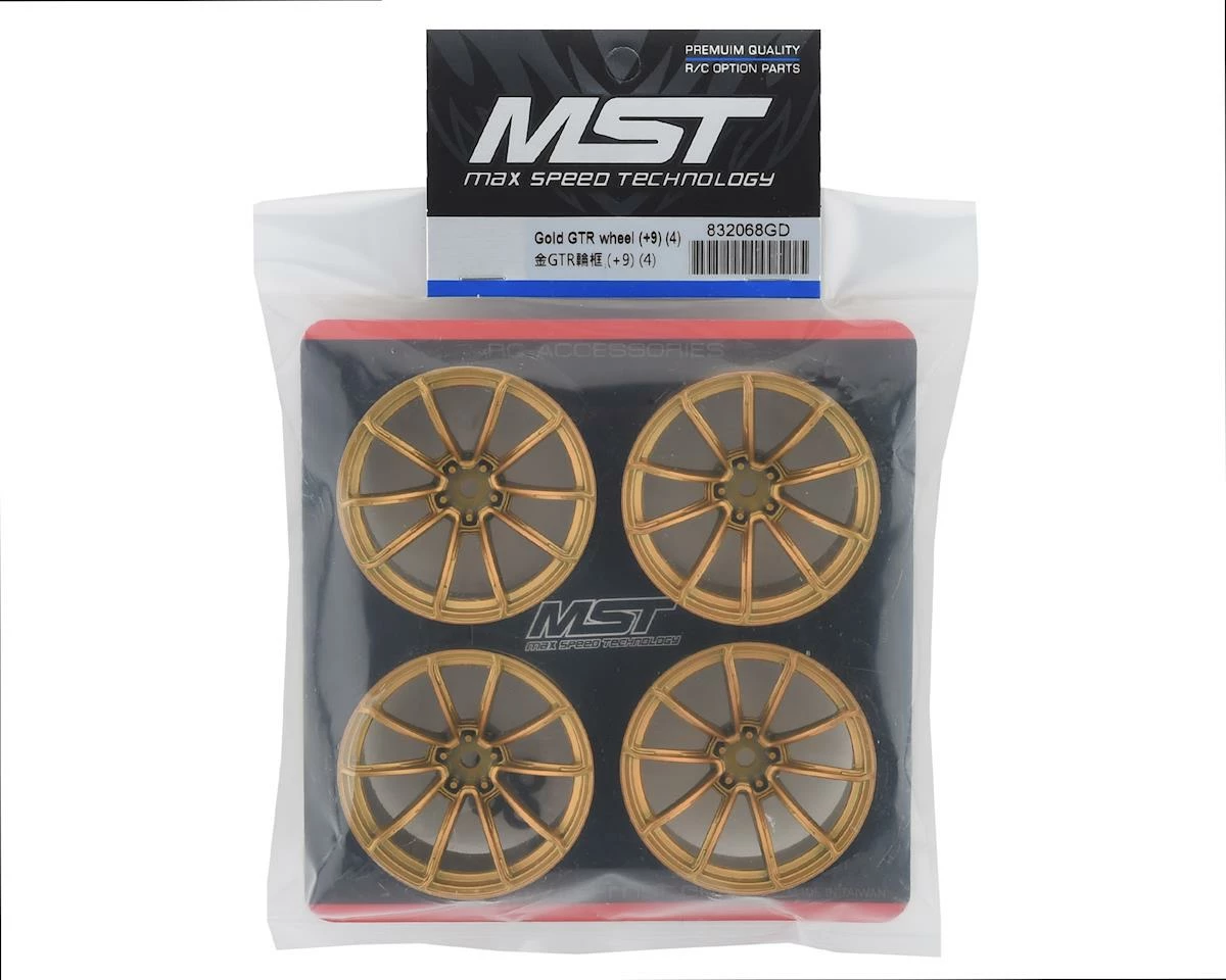 MST GTR Wheel Set. These wheels offer a +9mm offset and feature a 10 spoke design with details that will look great on any drift car. Package includes four wheels, and four wheel nuts.
