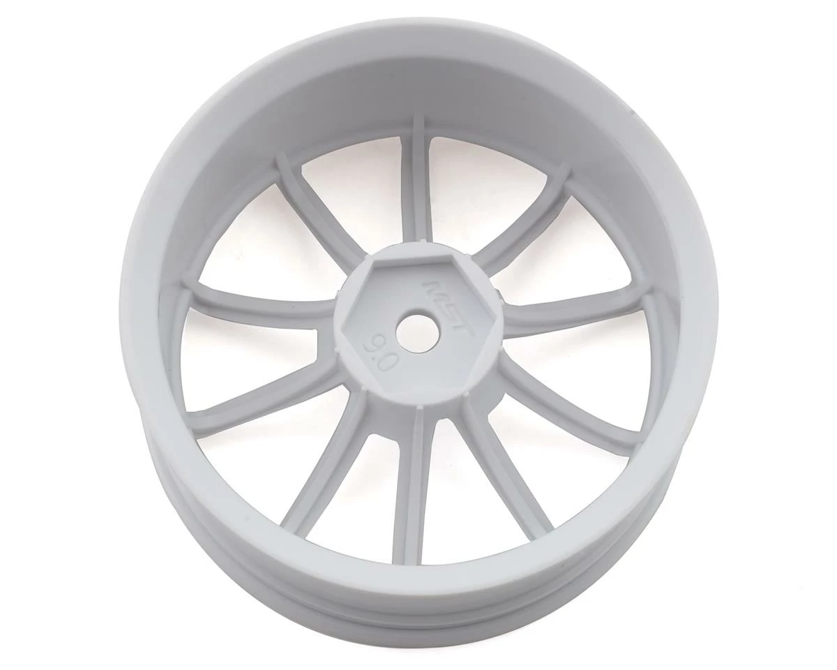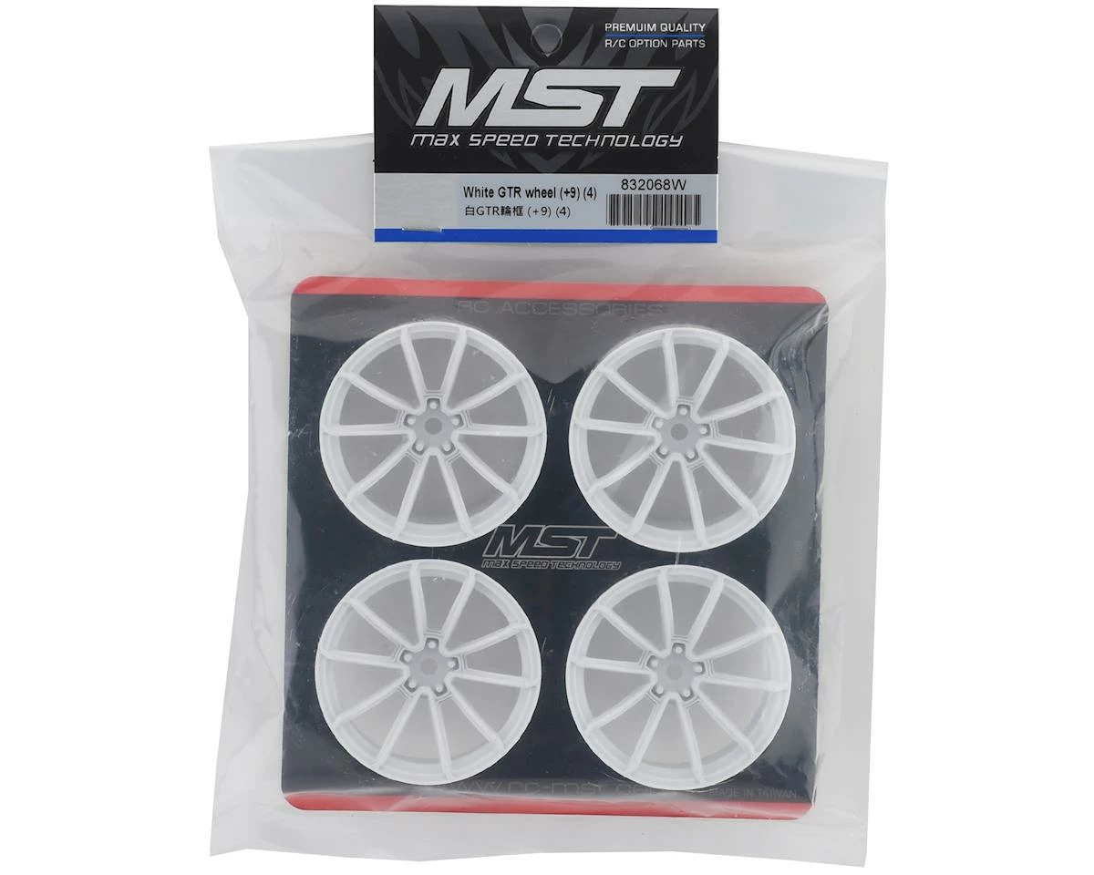 MST GTR Wheel Set. These wheels offer a +9mm offset and feature a 10 spoke design with details that will look great on any drift car. Package includes four wheels, four wheel nuts and four adhesive foam strips.