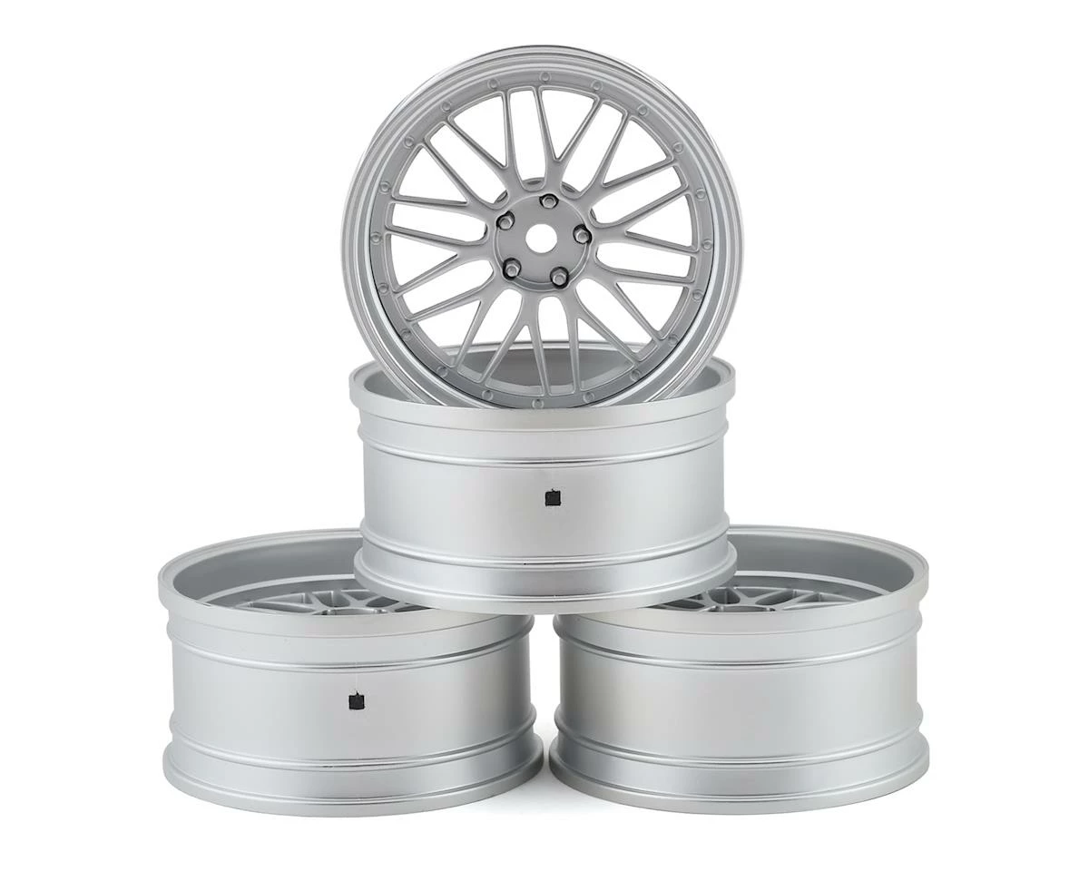MST LM Offset Changeable Wheel Set. These wheels feature an aggressive Y-spoke pattern and molded in bolt details. The design allows you to setup the wheel with a +3, +5, +7 or +9 offset to fit a variety of bodies, and setup the stance to create the look you want on your ride. Simply clock the wheel face inside the rim and glue in place. Package includes four wheels, four serrated wheel nuts and four adhesive foam strips.Â
