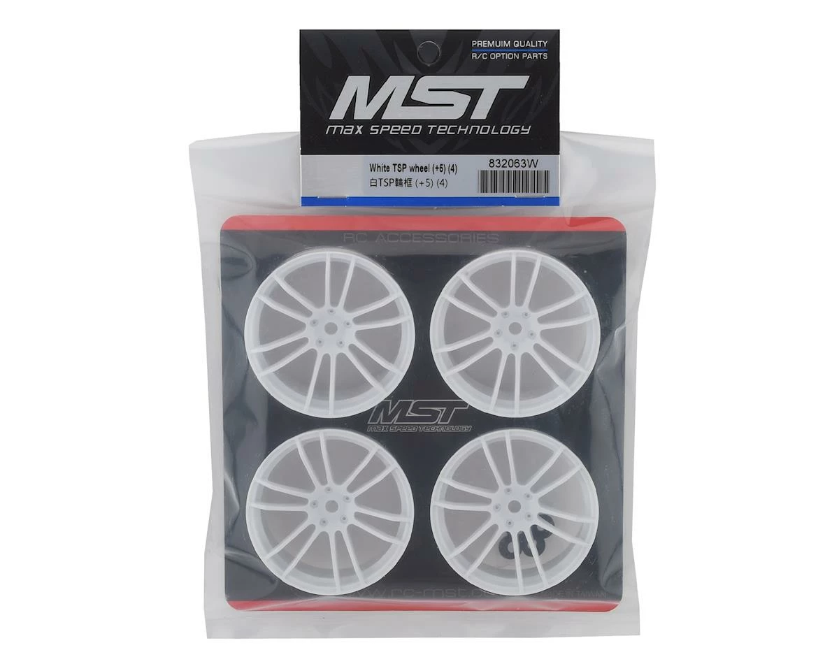 MST TSP Wheel Set. These wheels offer a +5mm offset and feature a 12 spoke design with details that will look great on any drift car. Package includes four wheels, and four wheel nuts.