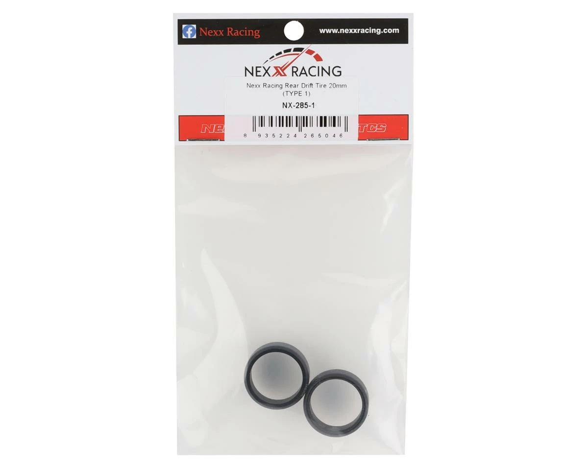 This is a pair of Nexx Racing 20mm Rear Drift Tires for various 1/24 and 1/28 scale electric RC Cars. These slick hard plastic tires are the best choice for drifting, ensuring minimal traction, and maximum sliding. Best to be combined with the 20mm wheel selection from Nexx Racing.