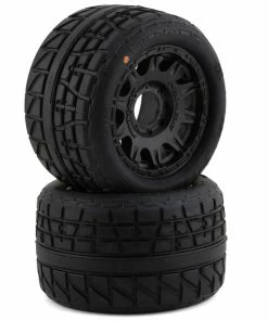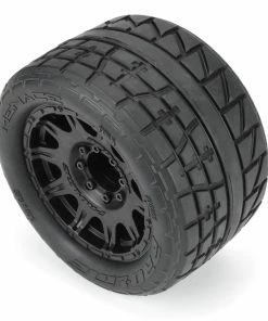 - (2) 1/8 Menace HP Belted 3.8″ Pre-Mounted Truck Tires (Black) w/Raid Wheels