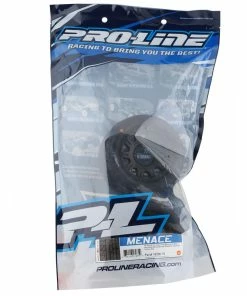 Pro-Line 1/8 Menace HP Belted 3.8″ Pre-Mounted Truck Tires. These Menace HP tires are mounted on Raid 3.8″ wheels and ready to hit the pavement. The 1:1 racing-inspired treads are designed to give your rig massive traction on your street, parking lot, or track. Belted tires mean no ballooning allowing the tires to hold their shape, even at high speeds. Pre-mounted to Raid wheels, these tires are ready to give you a great all-around bashing experience.