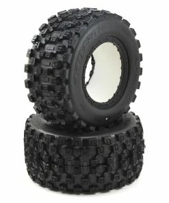 The Pro-Line Badlands MX43 Pro-Loc All Terrain Tire is the ultimate tire solution for X-MAXX owners. Pro-Line Badlands take the Motocross inspired tread and elevate the look a Bigger and Bolder knobby tread that matches modern MX tires. These tires have been developed from the ground up for extreme X-MAXX punishment with an all-new ultra-durable compound that prevents tire ballooning even at high speeds.