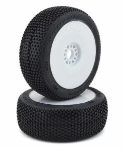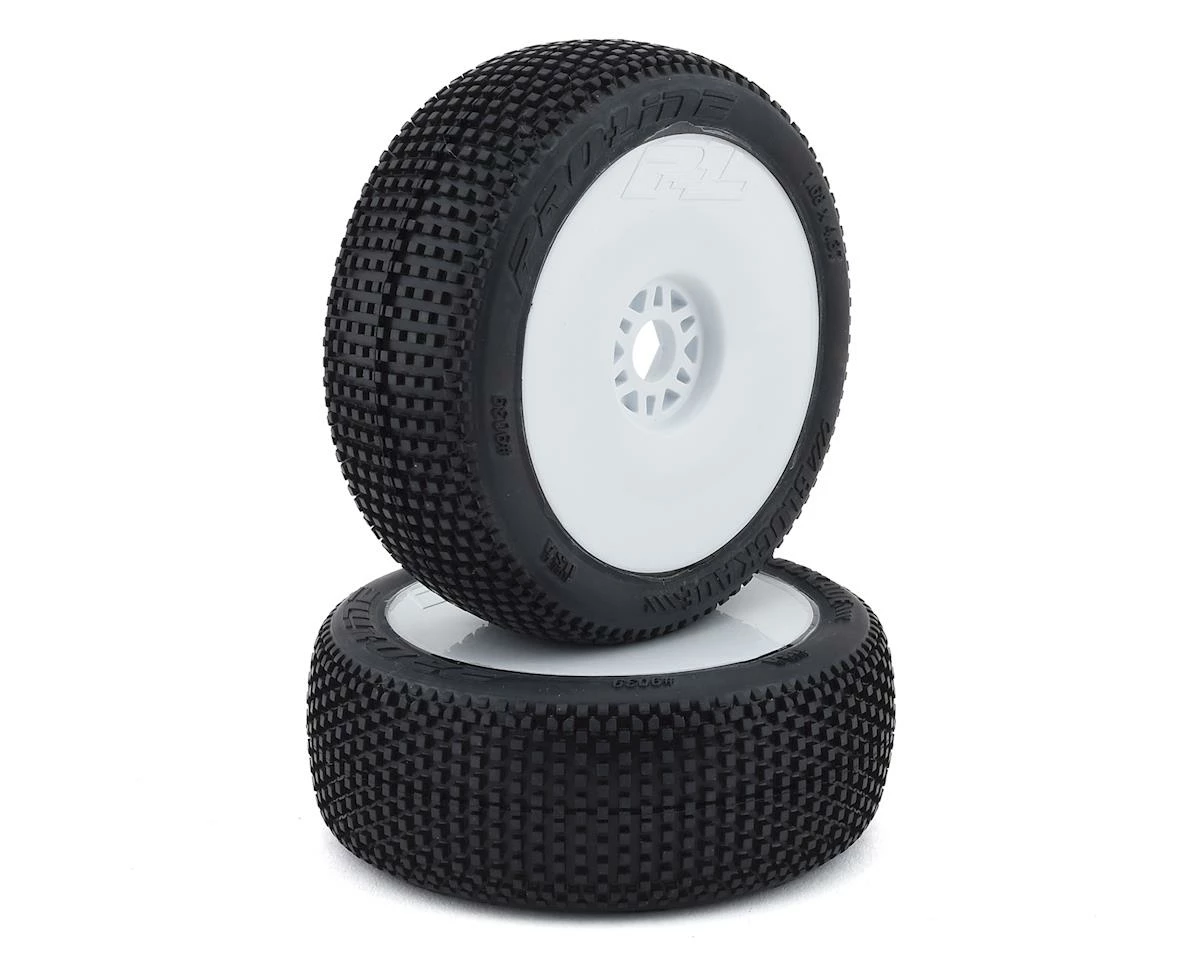 This is a set of two pre-mounted Pro-Line Blockade 1/8 Buggy Tires, premounted on white Lightweight Velocity wheels. Historic. Revolutionary. The Best. Just a few words that have been used to describe Pro-Line’s Blockade tire. History was made the first time the Blockade touched the race track – Winning the 2011 ROAR Fuel Off-Road Nationals by 2 laps at the hands of Ryan Cavalieri! The Revolutionary tread design features large lugs for class leading tread life, perfectly balanced tread spacing for maximum forward bite and uniquely blended side tread that reduces the edginess found in other race tires. This tire will give your 1/8 buggy the speed of a qualifying tire, with tread life capable of handling hour long A-mains.