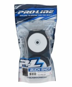 Pro-Line Buck Shot Pre-Mounted 1/8 Buggy Tires have pins that are very close in size to the amazing Hole Shot 2.0 but the Buck Shot pins are stacked closer together side to side, which provides significantly longer lasting performance. Unique to the Buck Shot are the alternating elongated bars that provide incredible forward grip! Similar to the extremely popular SwitchBlade tire, the Buck Shot is a directional tire with different tread on the outside compared to the inside, allowing you to mount the tires in the direction that suits your current track conditions. One side of the tire has standard pins, which is ideal for loose or low traction conditions where you want the tire to add side grip and improve steering. When you mount the tire the other direction, the connected side tread (Blade) reduces side traction in high-bite or edgy conditions.Â