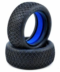This is a pair of two Pro-Line Electron 2.2″ 4wd Buggy Front Tires. The Electron shares a variety of design elements with Pro-Lineโs ION tire. With the dirt grabbing center tread and futuristic styling, the Electron delivers connected tire tread technology that improves traction and wear on even the most abrasive of indoor track conditions. The square center pins laid out between the connected tread provide consistent forward and side bite even when the track gets dusty. Drivers are amazed by the precision steering and super-fast corner speed that the Electrons provide.