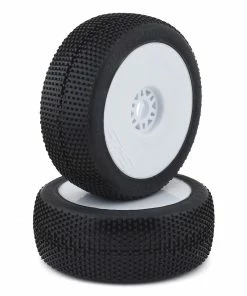 This is a set of two Pro-Line Hole Shot 2.0 Off-Road 1/8 buggy tires, premounted on white Lightweight Velocity wheels with a 17mm Hex. The Hole Shot has become one of the most used race tires in the world! From World Championships to National Championships, Regional race events to club race events, the Hole Shot design has just about every title imaginable because it just plain works in a variety of different race conditions. Now, Pro-Line has achieved the impossible: improved on the original in every way. Through meticulous refinement the new Hole Shot 2.0 has the performance to carry on the legendary Hole Shot name well into the next Decade. The Hole Shot 2.0 provides more forward traction, increased steering response and is less edgy in the ruts making you faster than ever before.