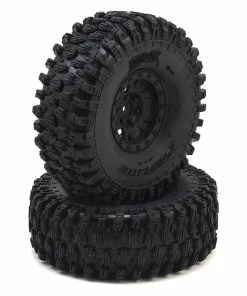 The Hyrax 1.9″ tire has been conveniently pre-mounted to the Impulse Black Plastic 1.9″ wheels that are Proudly Made in the USA! These Impulse wheels are designed to not only look scale but to be super easy to use by only requiring 6 screws per wheel for mounting tires. The unique 3-piece plastic wheel design bolts together in the back and locks on to Pro-Line’s incredible list of 1.9″ Crawling Tires. The back of this 12mm hex Rock Crawling 1.9″ wheel also accepts Pro-Line’s optional Brass Brake Rotor Weights (sold separately) for additional looks and performance. The overall wheel width and wheel offset are the same as Pro-Line’s line of 1.9″ Aluminum Pro-Forge Wheels, so you know they will fit your truck and look good doing it.