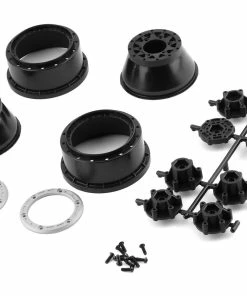 Pro-Line Raid Bead-Loc 2.2/3.0″ Short Course Wheels with 12mm & 14mm Removable Hex. This pair of short course wheels feature the use of Pro-Line 6×30 removable hex and a secure 6-bolt bead-loc ring. Included with these wheels are hex options with varying offsets: 12mm Traxxas Slash Front, Slash Rear/4×4 Front or Rear, Pro-Trac (0-offset) and 14mm for Arrma vehicles. Using the 6×30, these wheels are also compatible with the optional aluminum 6×30 hexes, creating even more offset and hex size options.