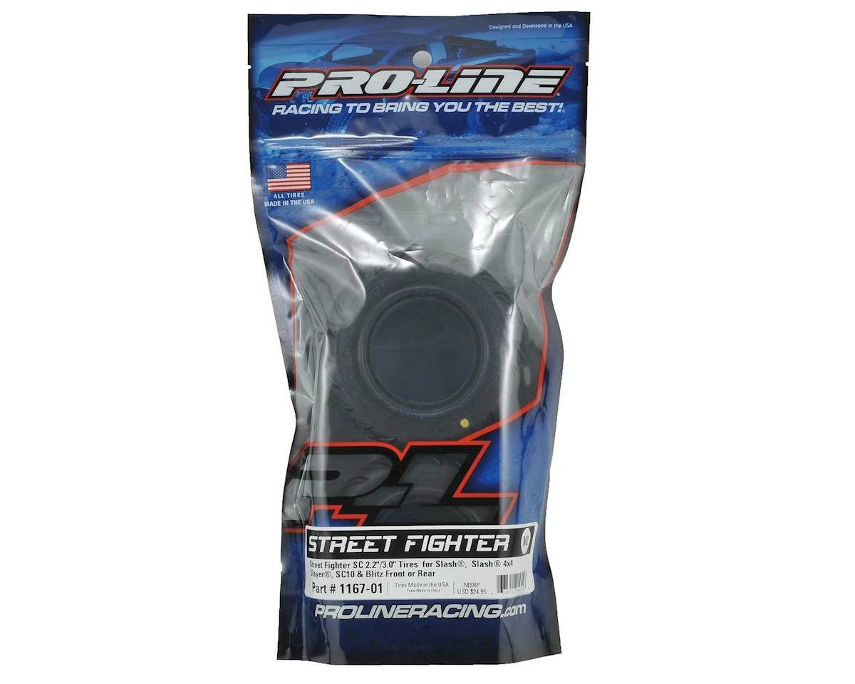 This is a set of two Pro-Line Street Fighter SC 2.2″/3.0″ Tires, in M2 (Medium) Compound. If you want the ultimate long wear street tire, then check out the Pro-Line Street Fighter SC. Based on the latest in high performance on-road tire technology, the Street Fighter SC has the perfect balance, G force developing tread pattern and style that will keep your truck turning heads on the street!