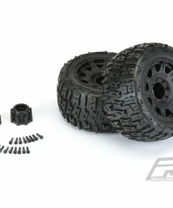 This is a set of two Pro-Line Trencher LP 3.8″ Pre-Mounted Truck Tires with Black Raid Wheels are designed to give your MT optimal traction on just about any surface and come in at 2.96″ wide by 5.6″ tall making it perfect for your MAXX or Low Profile 1:8 Monster Truck build. Super cool horizontal H shaped treads give your MT ridiculous amounts of forward bite and with the super tall Trencher tread, you’ll find that durability and longevity you have been searching for.