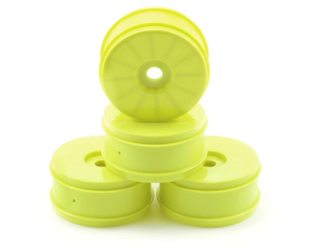 The V2’s are 1.3mm wider and 3mm taller than the traditional size 1:8 wheels. All this transfers into a stiffer sidewall for less sidewall flex enhancing stability and connectivity with your 1:8 buggy. This is achieved by using the same size 1:8 tires that you use now. Simply stretch standard tires over the V2 wheels and you’re ready to go.