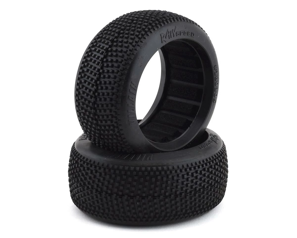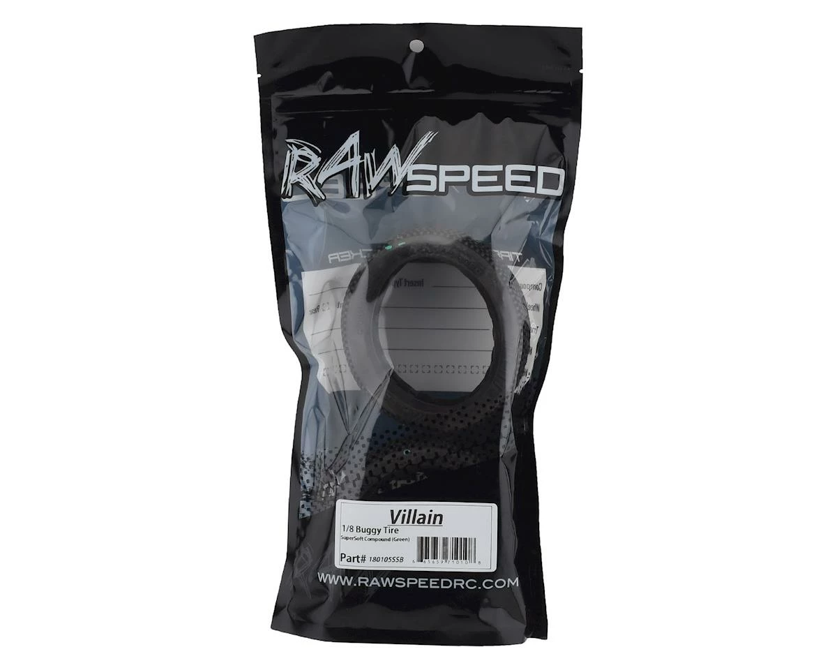 This is a pack of two Raw Speed RC “Villain” 1/8 Buggy Tires. The Villain is a large pin directional tire that excels in conditions that are medium to hard packed with light to medium loam on the surface. Package includes two Villain 1/8 buggy tires and two foam inserts.