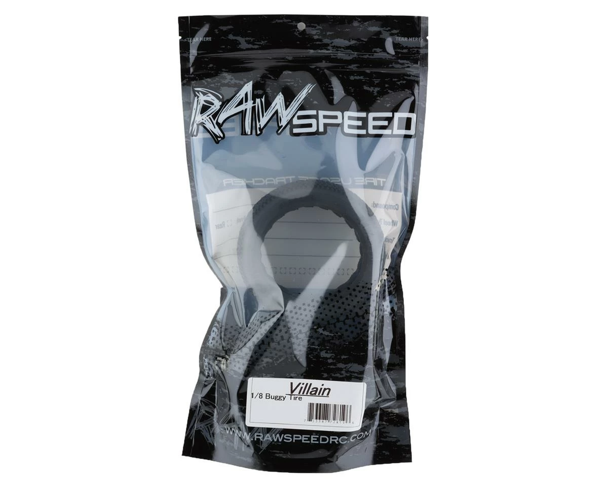 This is a pack of two Raw Speed RC “Villain” 1/8 Truggy Tires. The Villain is a large pin directional tire that excels in conditions that are medium to hard packed with light to medium loam on the surface and is available in multiple rubber compounds. Package includes two Villain Truggy tires and two foam inserts.