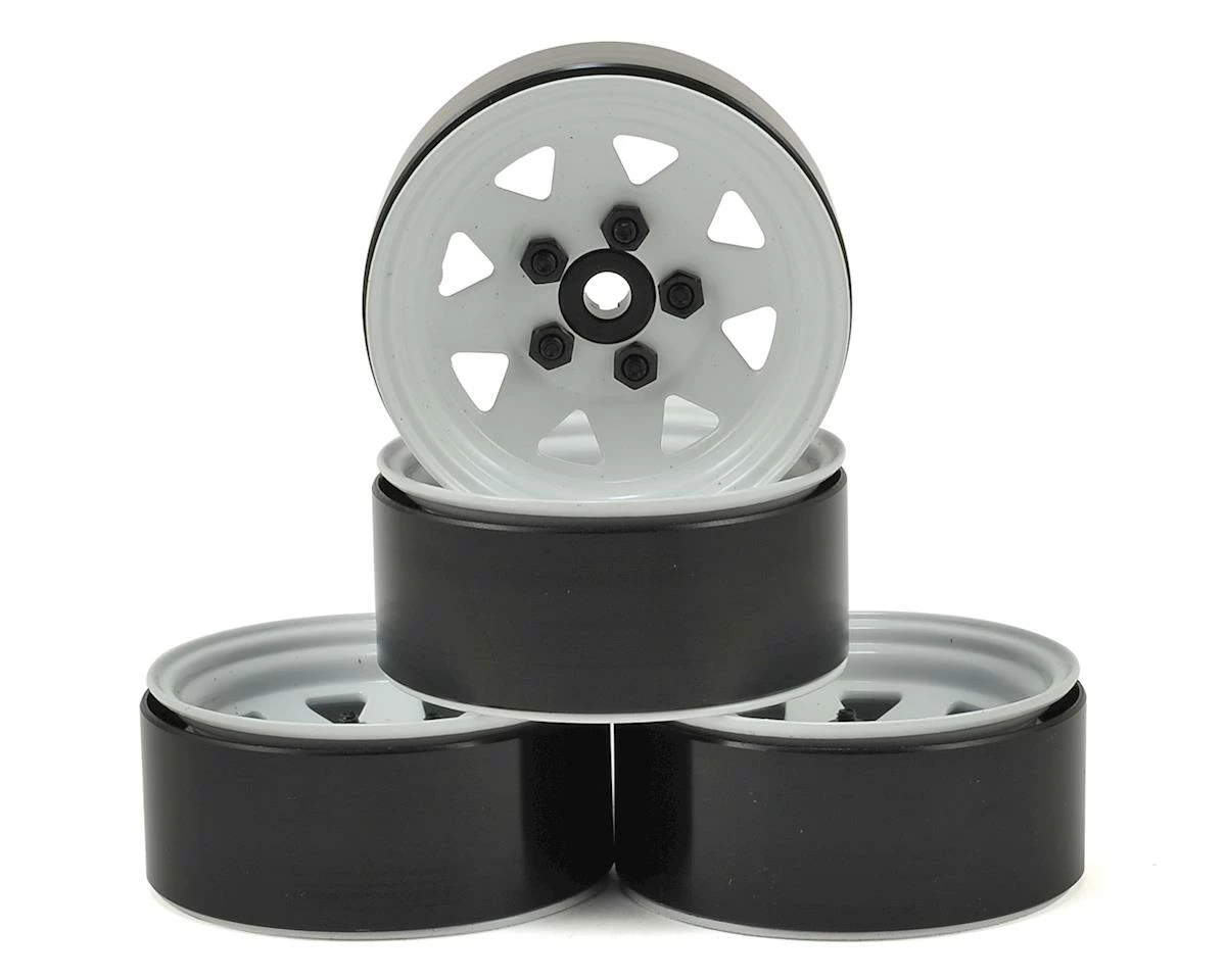 - (4) 5 Lug Wagon 1.9″ Steel Stamped Beadlock Wheels (White)