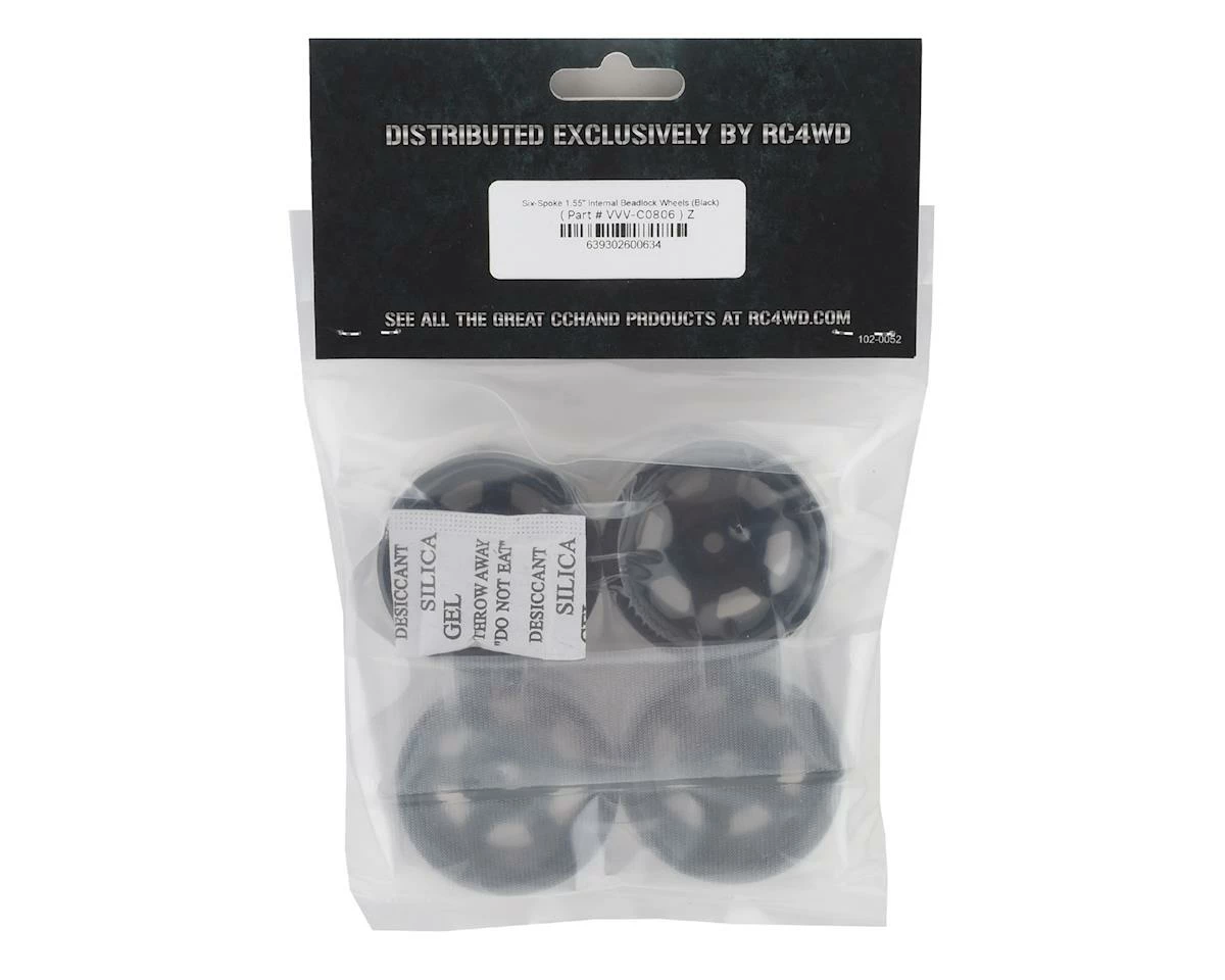 The optional RC4WD CChand Black Six-Spoke 1.55″ Internal Beadlock Wheels are an ideal way to enhance your rock crawlers appearance while minimizing the amount of weight added for better control. These wheels are CNC machined from quality Billet aluminum and given a stealthy black finish.