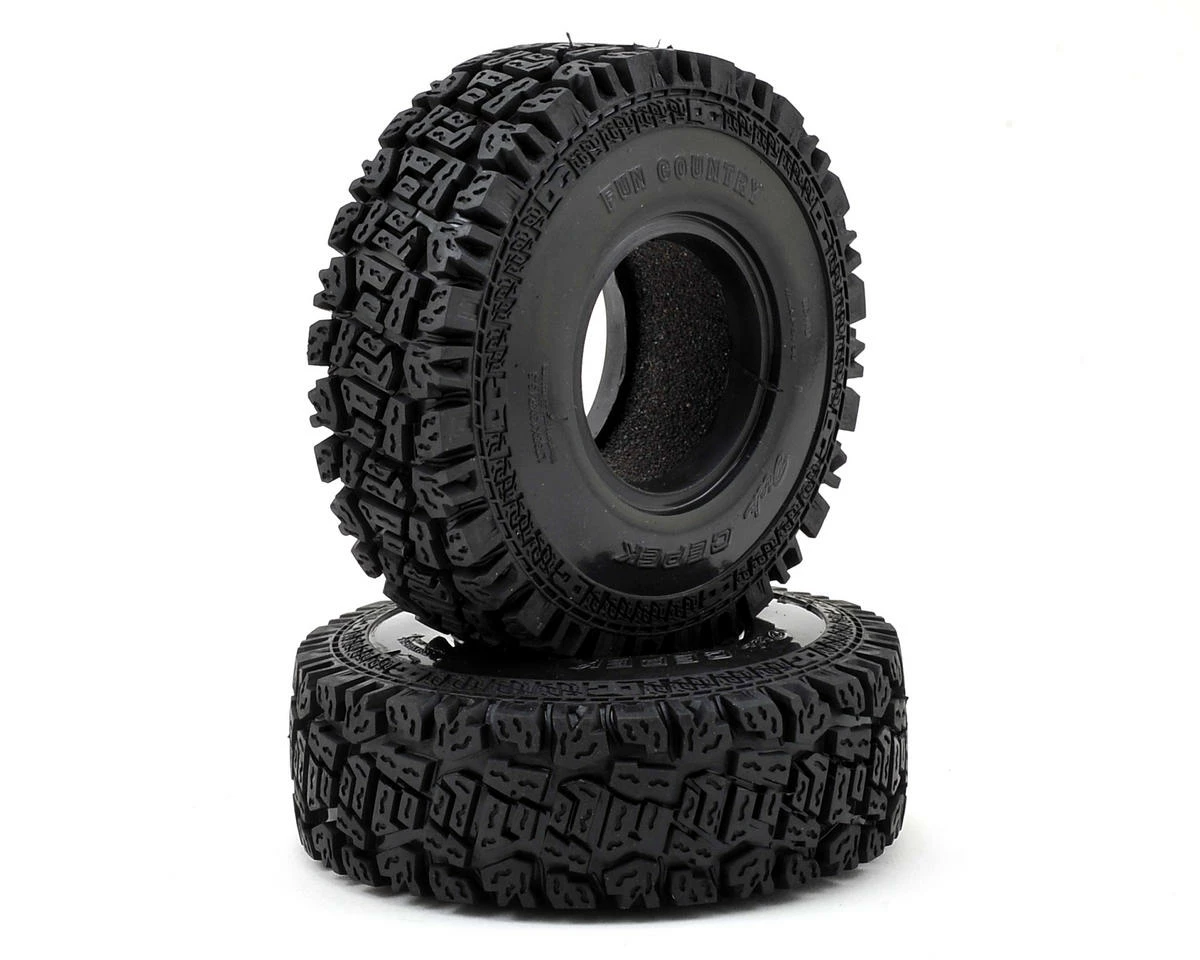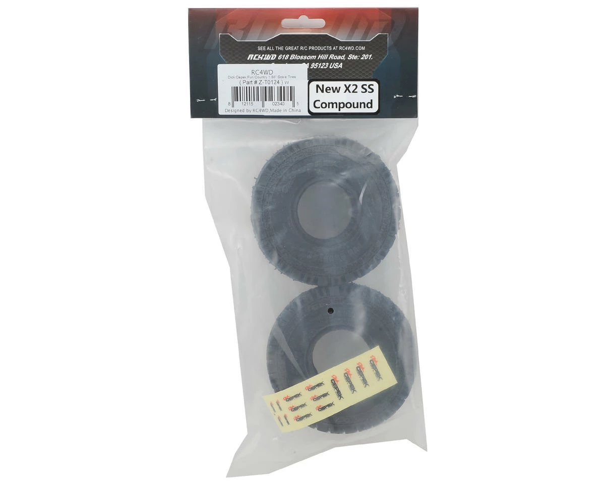 This is a pack of two RC4WD Dick Cepek Fun Country 1.55″ Scale Crawler Tire in X2 SS rubber compound. These Fun Country tires have been Officially Licensed by the Dick Cepek tire company and are only available from RC4WD.