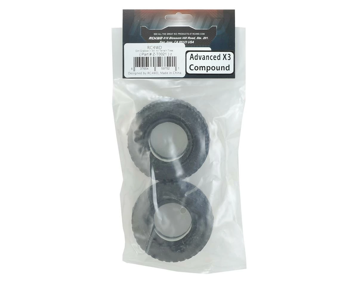 RC4WD Dirt Grabber 1.55″ All Terrain Tires are incredibly versatile. This tire is suited for a broad range of driving conditions. Made to handle everyday driving, as well as some light to moderate off road conditions, the Dirt Grabber offer peerless longevity, even wear and excellent durability. This tire is also an excellent choice for scale trailer applications.