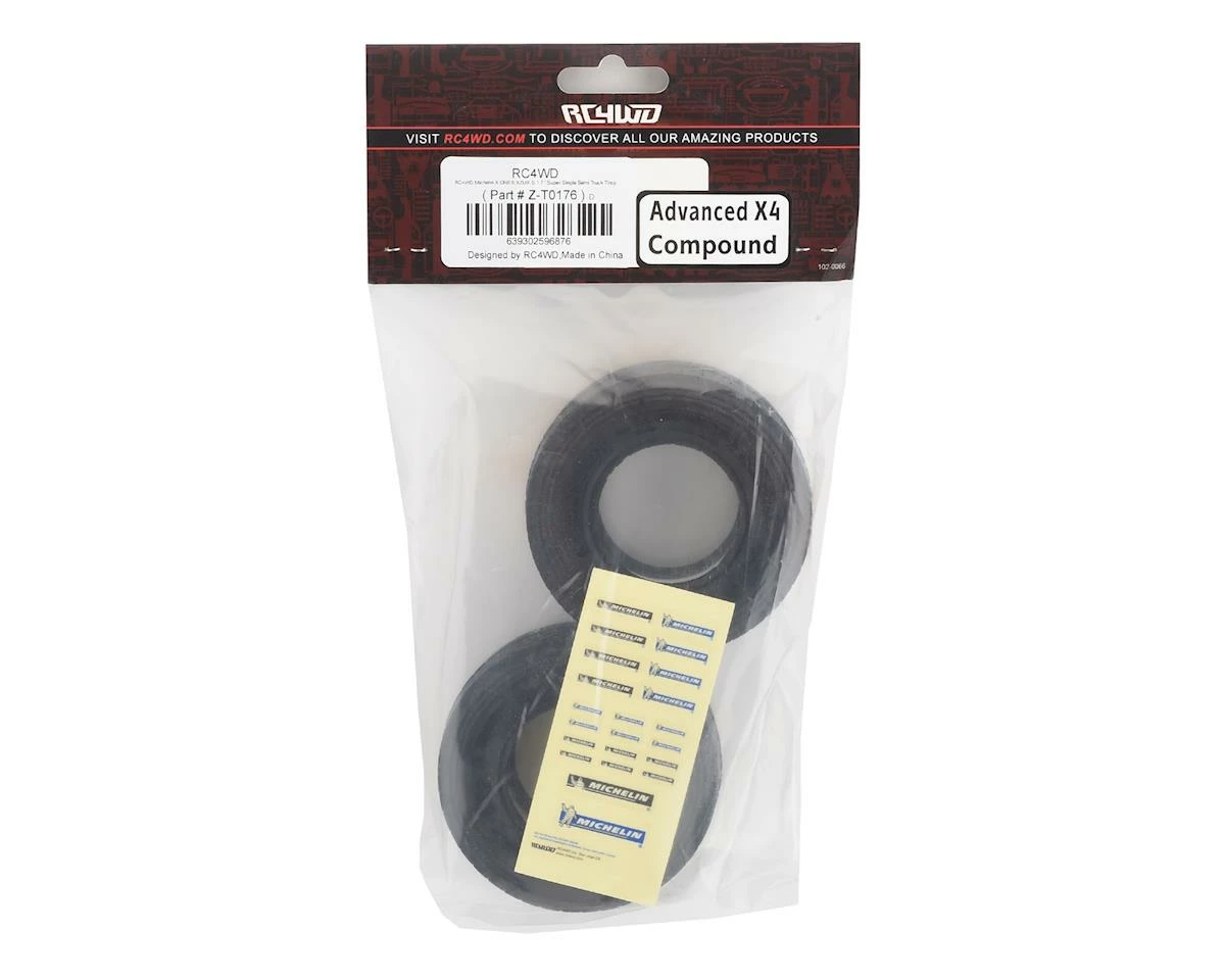 The RC4WDÂ Michelin X ONE XZU S 1.7 Commercial 1/14 Semi Truck Tire is the perfect truck tire for any occasion! These tires are designed to fit the RC4WD Super Single Rear Semi Truck Wheel (RC4ZW0290) and will give your Tamiya Semi an aggressive look by eliminating the dual rear tire setup with a single, wider tire.