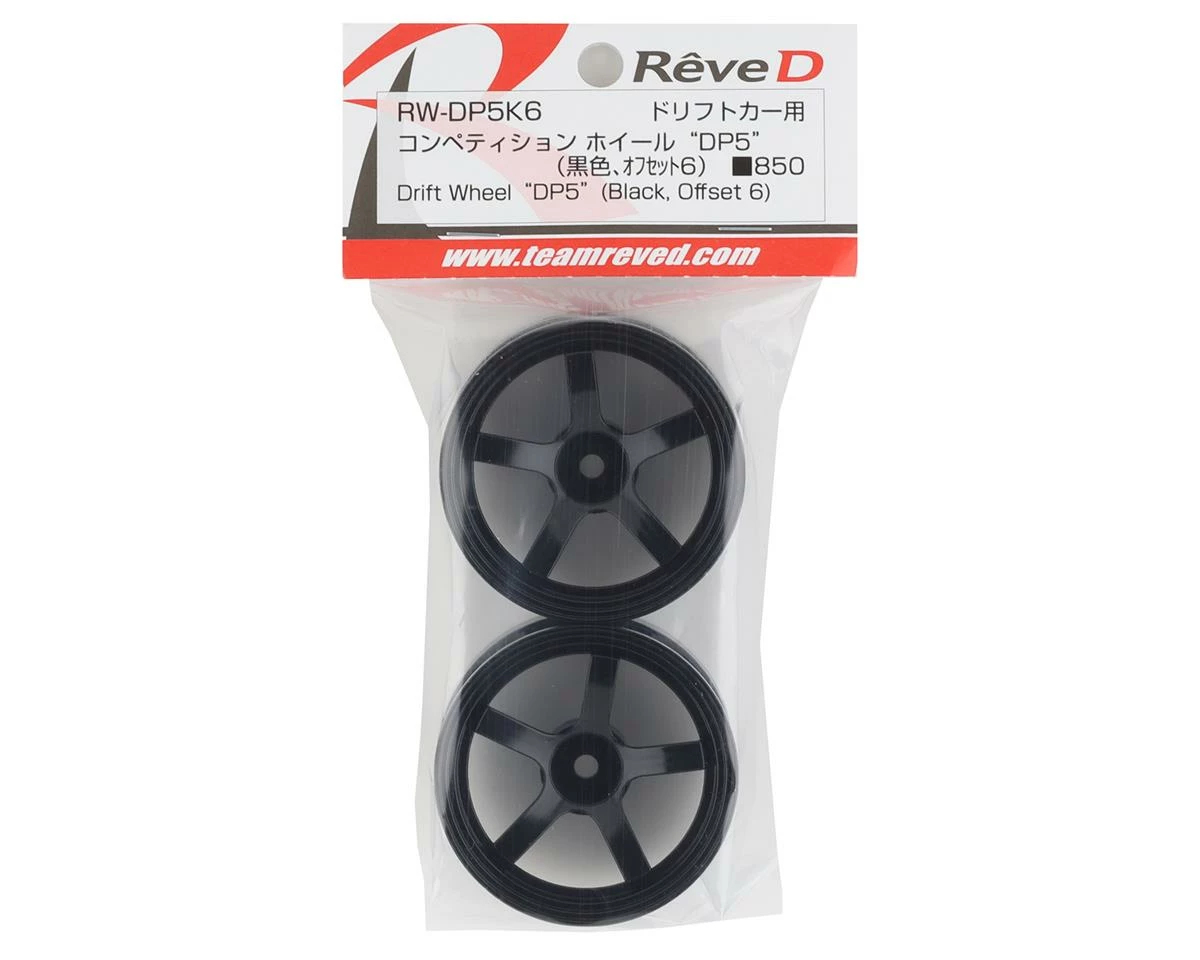 Reve D DP5 Drift Wheels are a lightweight and high traction wheel for your RC Drift car! Each wheel weighs in at 11g, while providing the proper strength and stiffness. The design of the wheel is very unique, and provides high traction thanks to the hex hub locations, and overall wheel dimensions. The large diameter and thin rim for the inner portion of the wheel prevents contact with the ball ends and suspension arms, while adding higher traction under bumpy conditions.Â