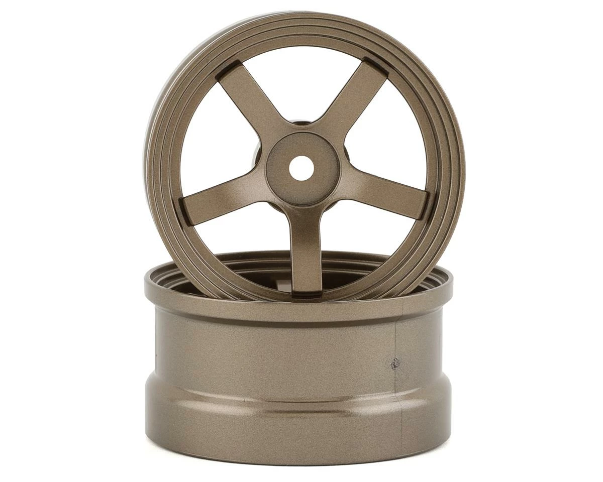 Reve D DP5 Drift Wheels are a lightweight and high traction wheel for your RC Drift car! Each wheel weighs in at 11g, while providing the proper strength and stiffness. The design of the wheel is very unique, and provides high traction thanks to the hex hub locations, and overall wheel dimensions. The large diameter and thin rim for the inner portion of the wheel prevents contact with the ball ends and suspension arms, while adding higher traction under bumpy conditions.Â