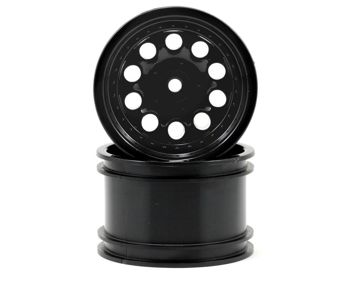 This is a set of RPM “Revolver” Wide Base Rock Crawler Wheels. Pull the trigger on the competition when you equip your ride with some loaded Revolvers from RPM! These rock crawler versions of the extremely popular 1/18th scale wheels have the same great looks and rugged durability of their little brothers but are designed for the high-stress, high-torque environment of the crawler world. Features include a 10-hole pattern blended perfectly with a sweeping dished face while the front edge features 30 faux rivets and a simulated 5 lug bolt pattern for a more authentic, scale appearance. RPM wheels are made from RPM’s killer blend of nylons and are backed by RPM’s awesome warranty.
