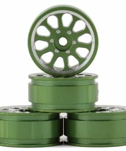 The Samix SCX24 Aluminum 1.0″ Wheel Set is a great way to add some bling and some weight to your SCX24. Made from CNC machined aluminum these 1 inch wheels feature chamfered edges and work with standard SCX24 tires. Package includes four green wheels.Â