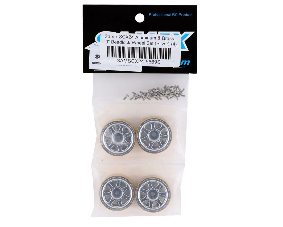 The Samix SCX24 Aluminum & Brass 1.0″ Beadlock Wheel Set is a great way to lower the center of gravity on your micro rig. The three piece design makes tire mounting easy, and the 7-spoke pattern offers a custom look. Package includes four wheels and hardware.