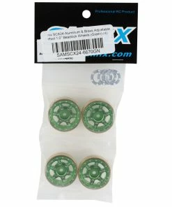 - (4)Â SCX24 Aluminum and Brass Adjustable Offset 1.0″ Beadlock Wheels (Green)