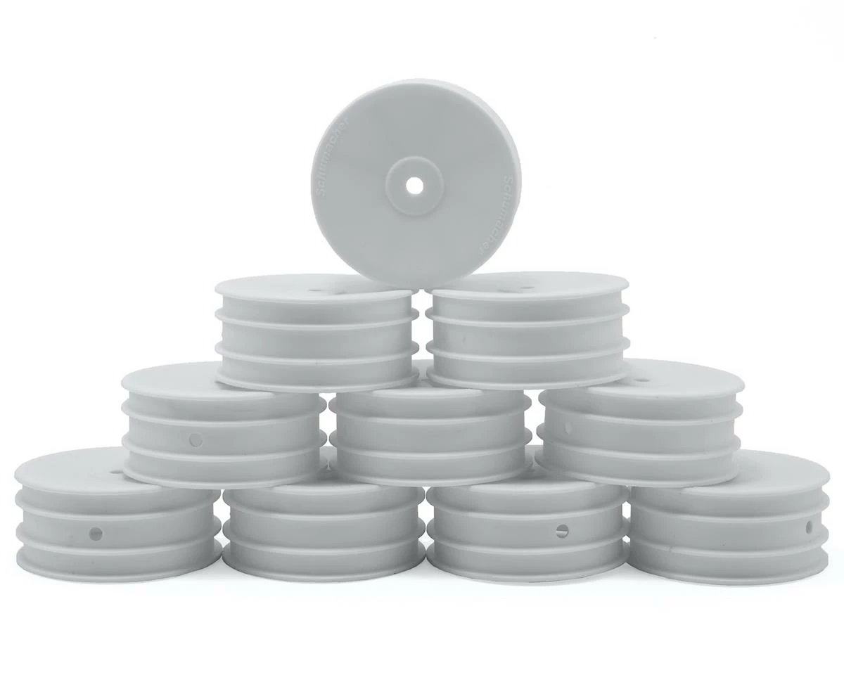 Schumacher 1/10 4WD Front Buggy Wheels. These 4WD front wheels are 27mm wide and feature a 12mm hex drive. These wheels are recommended for front 4wd use. Package includes ten white wheels.