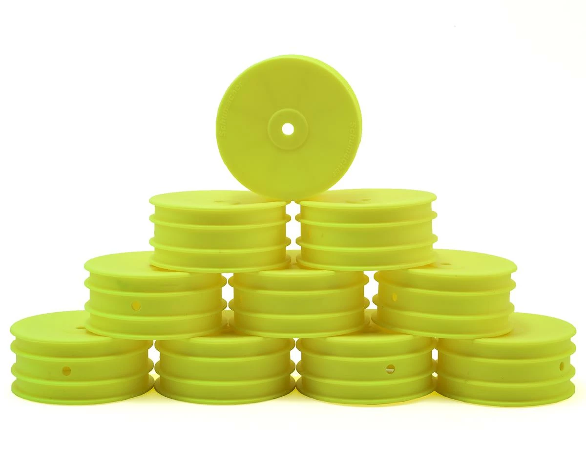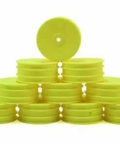 Schumacher 1/10 4WD Front Buggy Wheels. These 4WD front wheels are 27mm wide and feature a 12mm hex drive. These wheels are recommended for front 4wd use. Package includes ten yellow wheels.