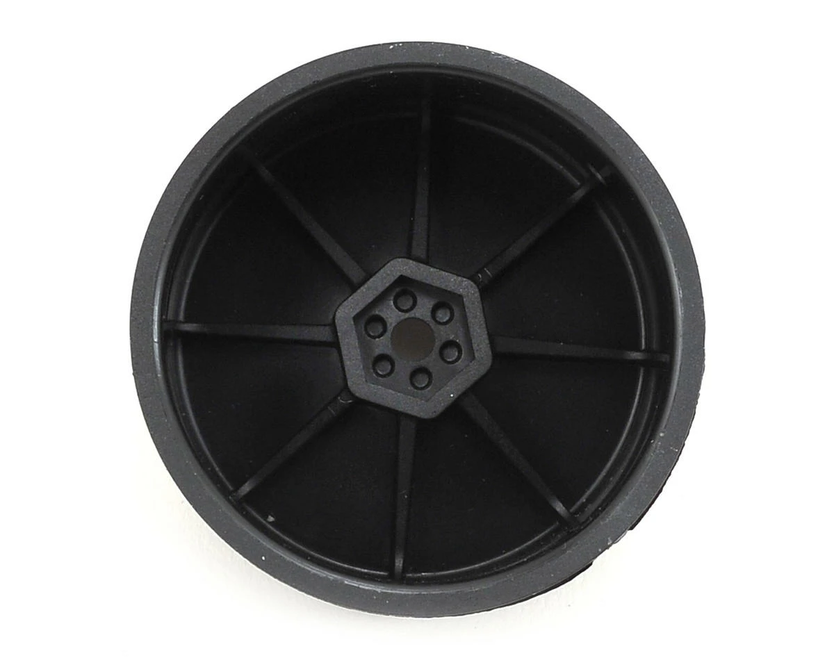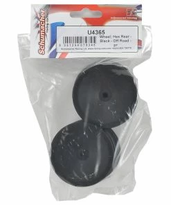 This is a pack of two Schumacher Rear Hex Wheels, in Black color. These rear wheels are intended for use with 1/10 scale 2WD and 4WD buggies that use a 12mm hex.Â