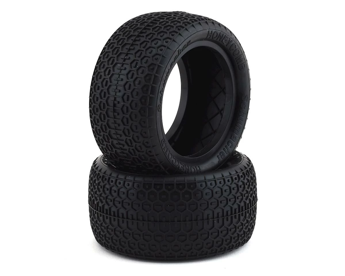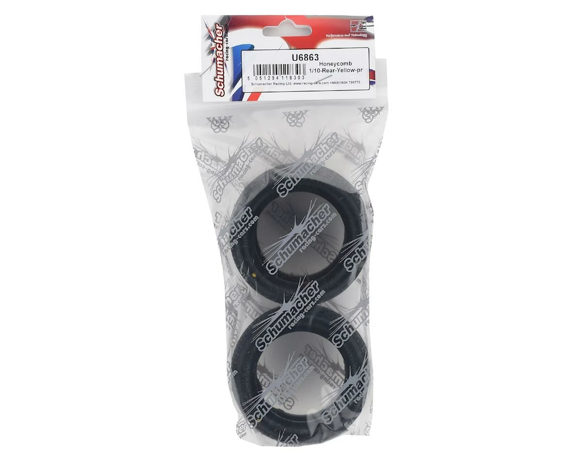 The Schumacher Honeycomb 2.2″ 1/10 Buggy Rear Tire was designed especially for low grip surfaces, specifically for the hugely popular Schumacher Worksop series in the UK where they race on an indoor sports hall surface. The tire offers great traction straight out of the packet, hard wearing for fair competition from run to run, throughout the race meeting duration. Extensive testing has been completed by high level drivers and regular runners to provide great consistent performance and car balance on low grip surfaces.