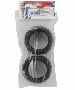 This is a set of two Schumacher “Mini Spike 2” 2.2 1/10 Buggy Rear Tires. The Schumacher Mini Spike 2 tire is the control tire used for a majority of races in the UK, making it an excellent choice for a variety of outdoor track conditions.