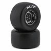 This is a set of two Schumacher “Spiral” 1/8 Buggy Tires. These tires have been pre-mounted on white dish wheels. The Spiral tire was designed for surfaces that need more penetration of the ground to gain grip, like grass and loose dirt. Spiral tires feature large pins, in a directional ‘spiral’ pattern that spaces the pins closer together on one side of the tire, and farther apart on the other side.