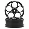 This is a pack of four Serpent 1/10 EP Touring Car Wheels. These wheels are strong, yet lightweight, and feature extra ribs to help seat and support the foam inserts. The inner ribs tie into the hex adaptor providing extra stiffness and strength, while the outer rim edge helps to better support the tire. Plus, they are compatible with all 1/10 electric touring cars and weigh 11 grams each.
