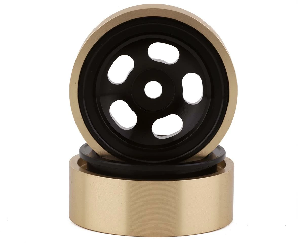 SSD SCX24 1.0” Aluminum/Brass 5-Slot Beadlock Wheels are a unique option for the SCX24 that combines stock wheel offset in a hybrid aluminum and brass beadlock configuration. Compatible with 1.0″ size tires, these three piece wheels look incredible and are a great way to dress up your SCX24. Plus, the additional weight of the aluminum and brass design adds 24 grams of weight per wheel (96g for four wheels), and will help keep your mini rig stuck to the rocks when the trail gets technical. Package includes two wheels.