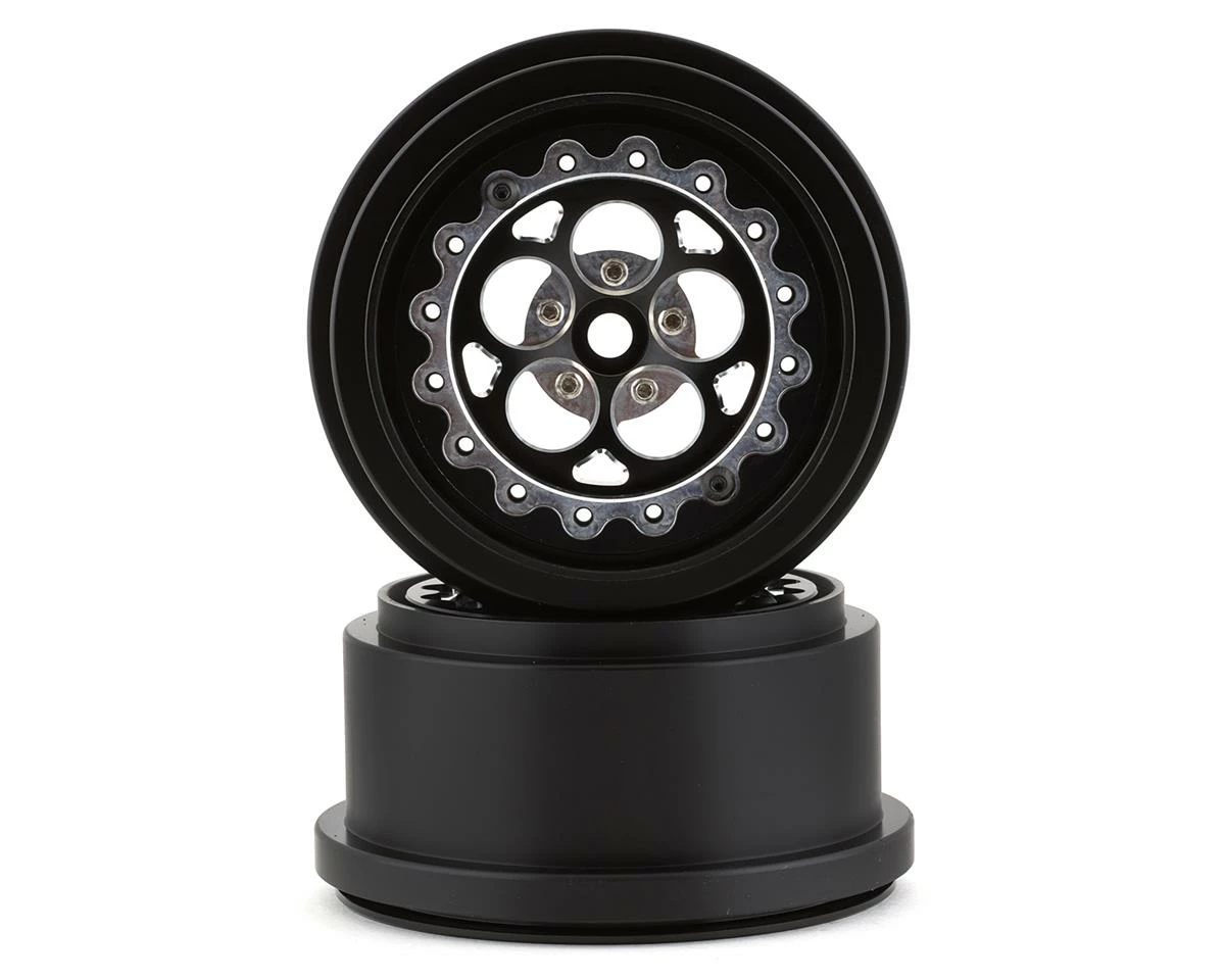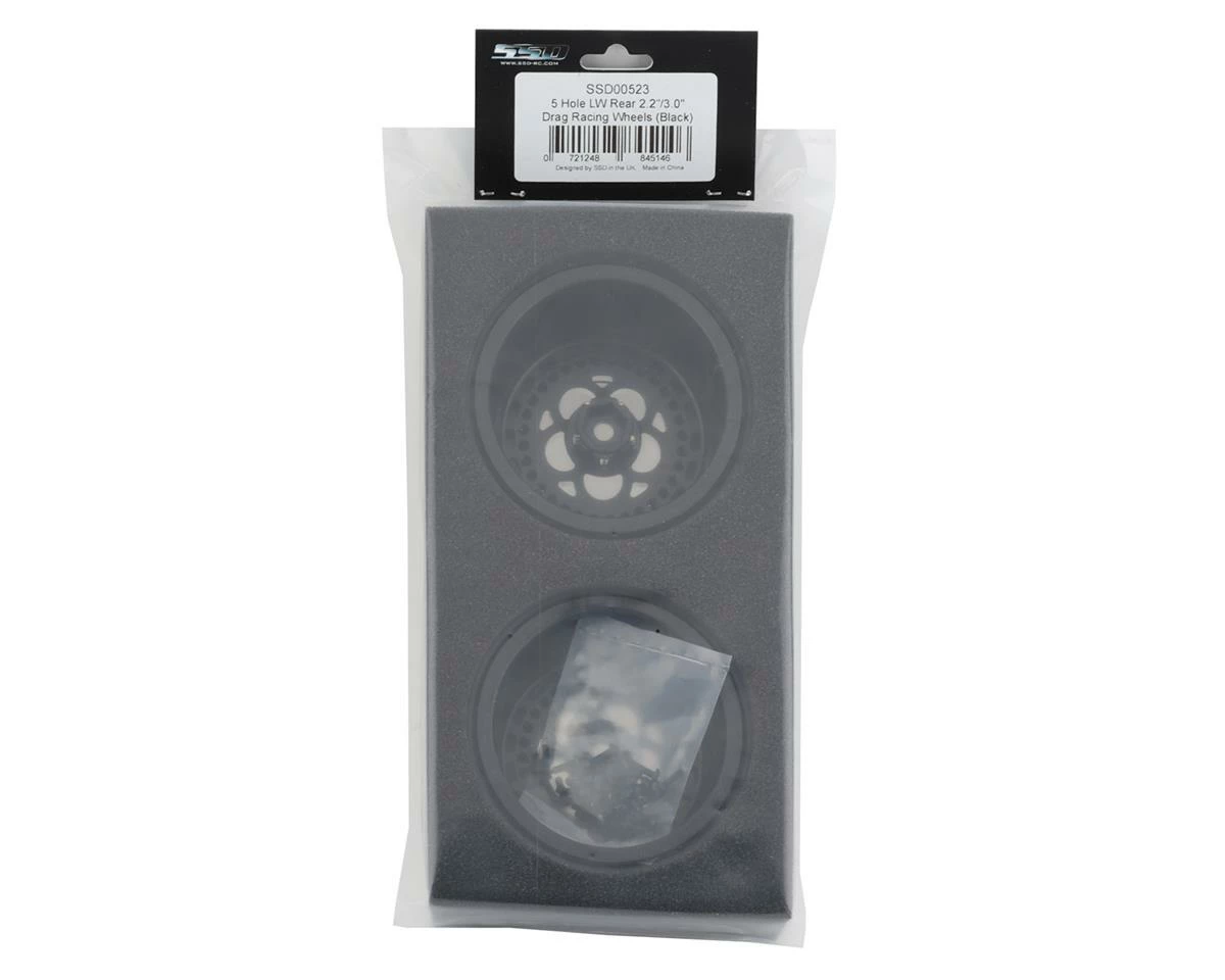 SSD 5 Hole Lightweight Aluminum Drag Racing Beadlock Wheels are an excellent lightweight upgrade for 1/10 Drag applications. With aggressive machining bringing the weight down to a 90g per wheel you will be hard pressed to find a lighter aluminum beadlock wheel option. Using Standard 2.2″/3.0″ wheel size, a 12mm hex and 23.6mm offset these will fit most 1/10 drag applications. Combined with the matching front wheel (SSD00473) your vehicle will have not only a great looking wheel package but performance to match.Â
