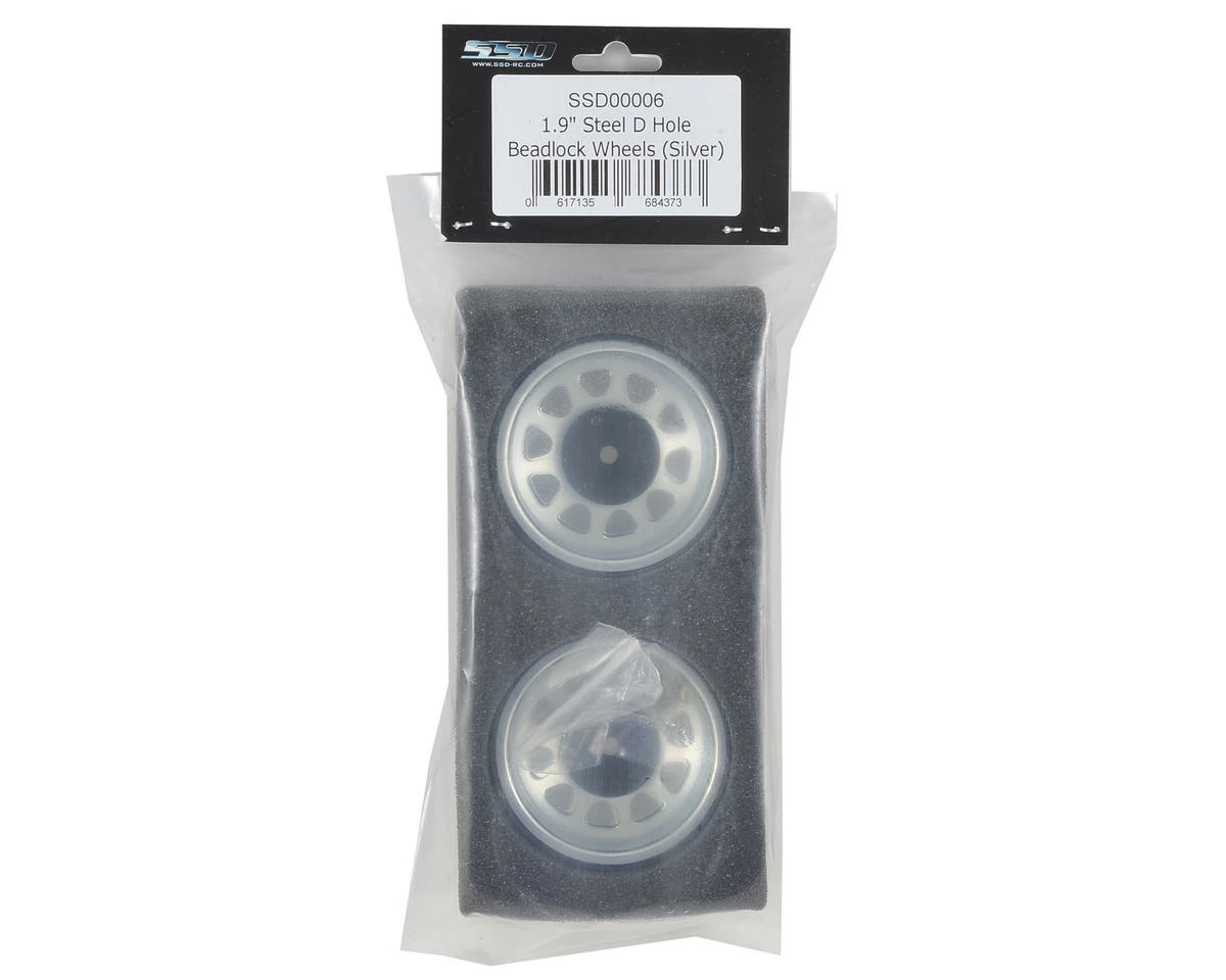 SSD D Hole 1.9″ Steel Beadlock Wheels feature a plated finish, machined aluminum 12mm hubs and beadlock rings, combined with an internal beadlock design and SSD scale hex head bolts to round out the package.