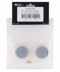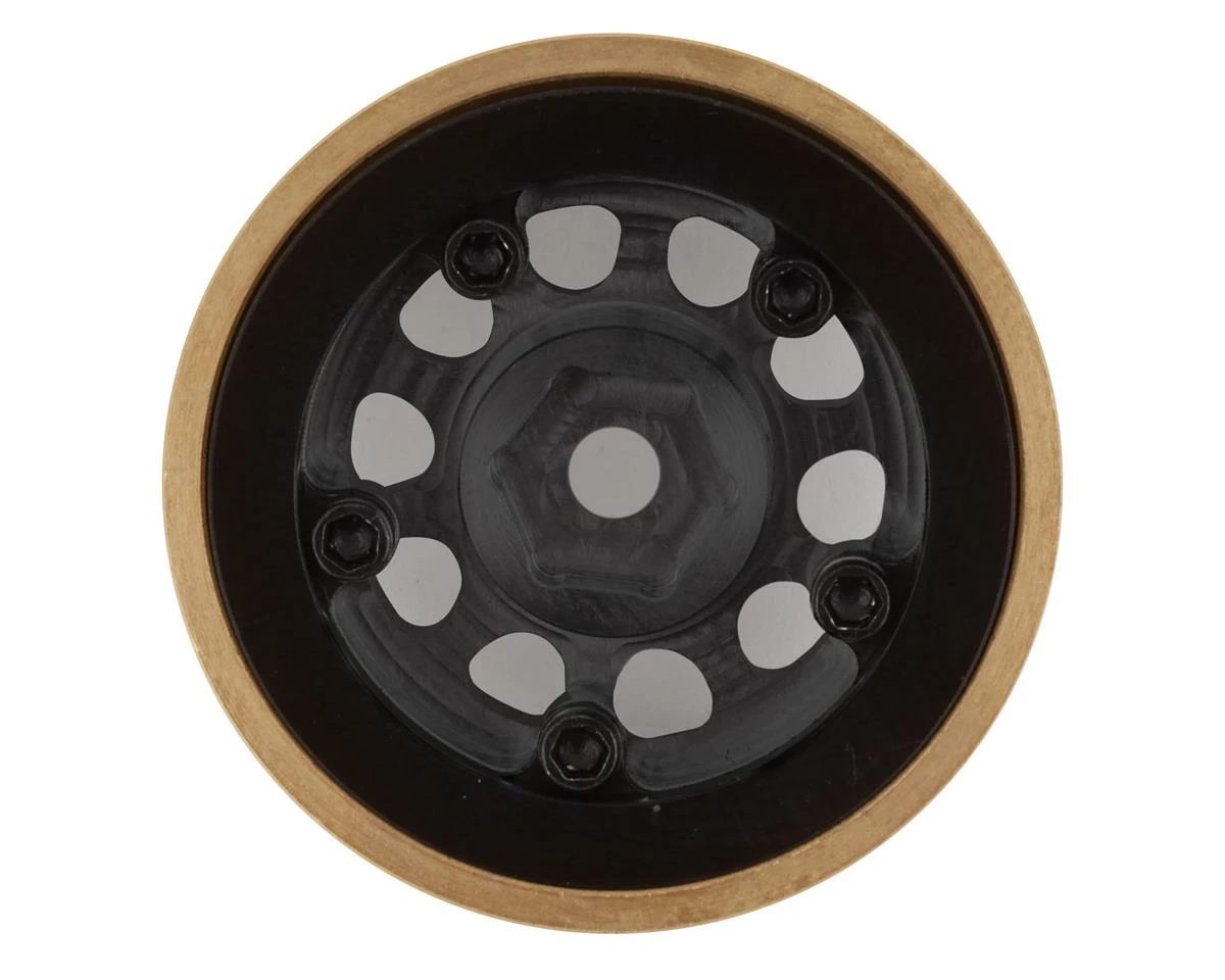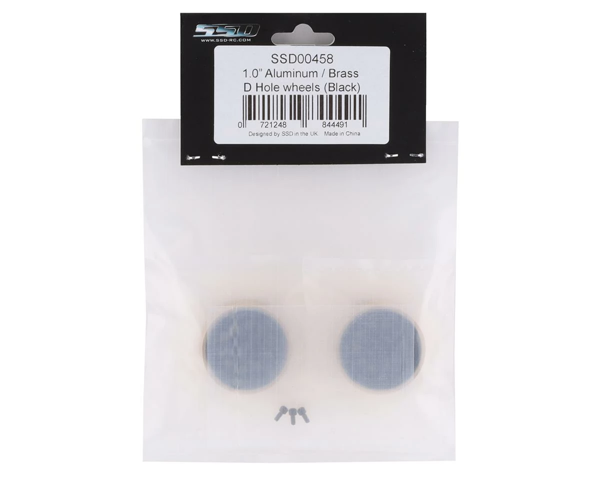 SSD SCX24 1.0” Aluminum/Brass D Hole Wheels are a unique option for the SCX24 that combines stock wheel offset in a hybrid aluminum and brass beadlock configuration. Compatible with 1.0″ size tires, these three piece wheels look incredible and are a great way to dress up your SCX24. Plus, the additional weight of the aluminum and brass design adds 24 grams of weight per wheel (96g for four wheels), and will help keep your mini rig stuck to the rocks when the trail gets technical. Package includes two wheels.