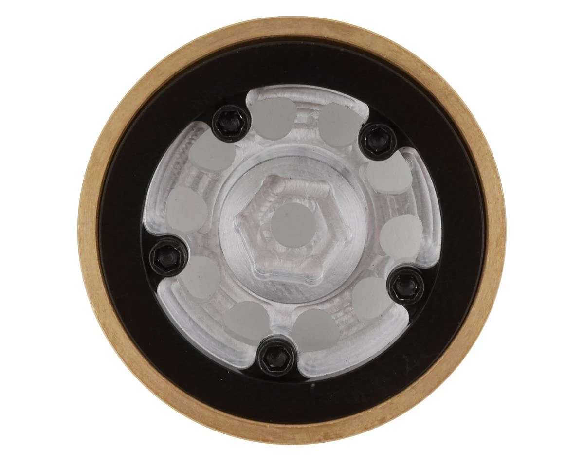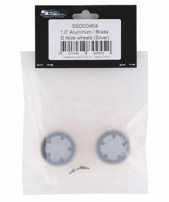 SSD SCX24 1.0” Aluminum/Brass D Hole Wheels are a unique option for the SCX24 that combines stock wheel offset in a hybrid aluminum and brass beadlock configuration. Compatible with 1.0″ size tires, these three piece wheels look incredible and are a great way to dress up your SCX24. Plus, the additional weight of the aluminum and brass design adds 24 grams of weight per wheel (96g for four wheels), and will help keep your mini rig stuck to the rocks when the trail gets technical. Package includes two wheels.