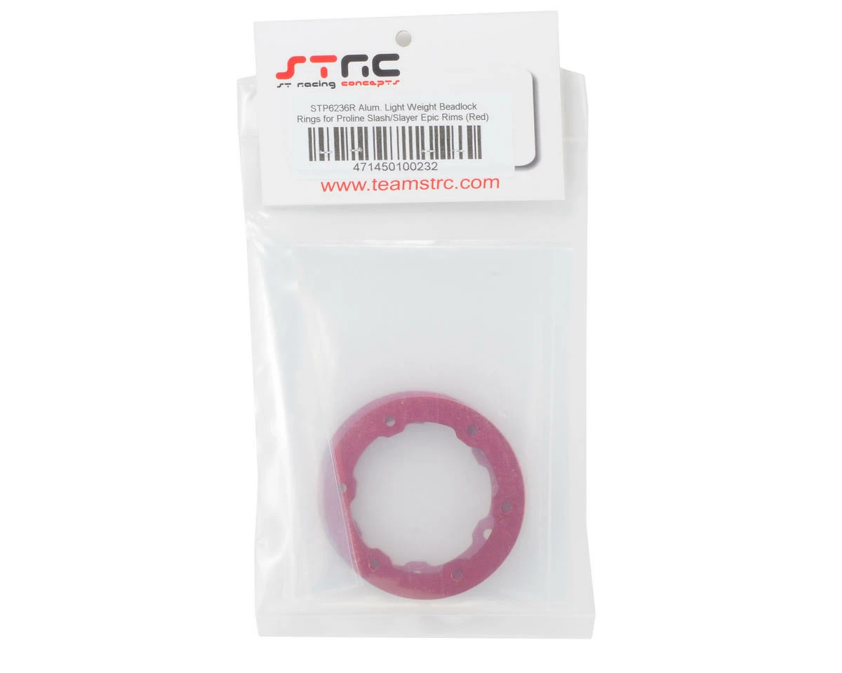This is a set of two optional ST Racing Concepts Aluminum Beadlock Rings, and are intended for use with the Pro-Line Epic & Split Six Bead-Loc wheel. For Slash and Slayer owners who are running the great Epic or Split Six beadlock rims, STRC offers beadlock Rings in different colors to choose from. These beadlocks are CNC Machined Aluminum (not stamped) and are extremely light weight compare to the stock Epic Rim beadlock rings (which are made of coated steel).